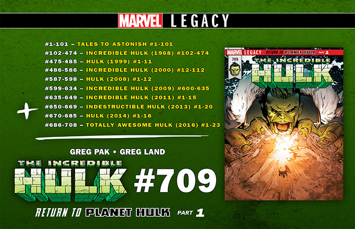 In October 2017, Marvel restored the original legacy numbering of its titles — or in some cases, created legacy titles out of a slew of short-running series and single issues. We discuss legacy numbering and its value over the years here, but as a supplement to that and a guide for the future, we here provide Marvel's visual explanations for its renumberings — at least as of late 2017.